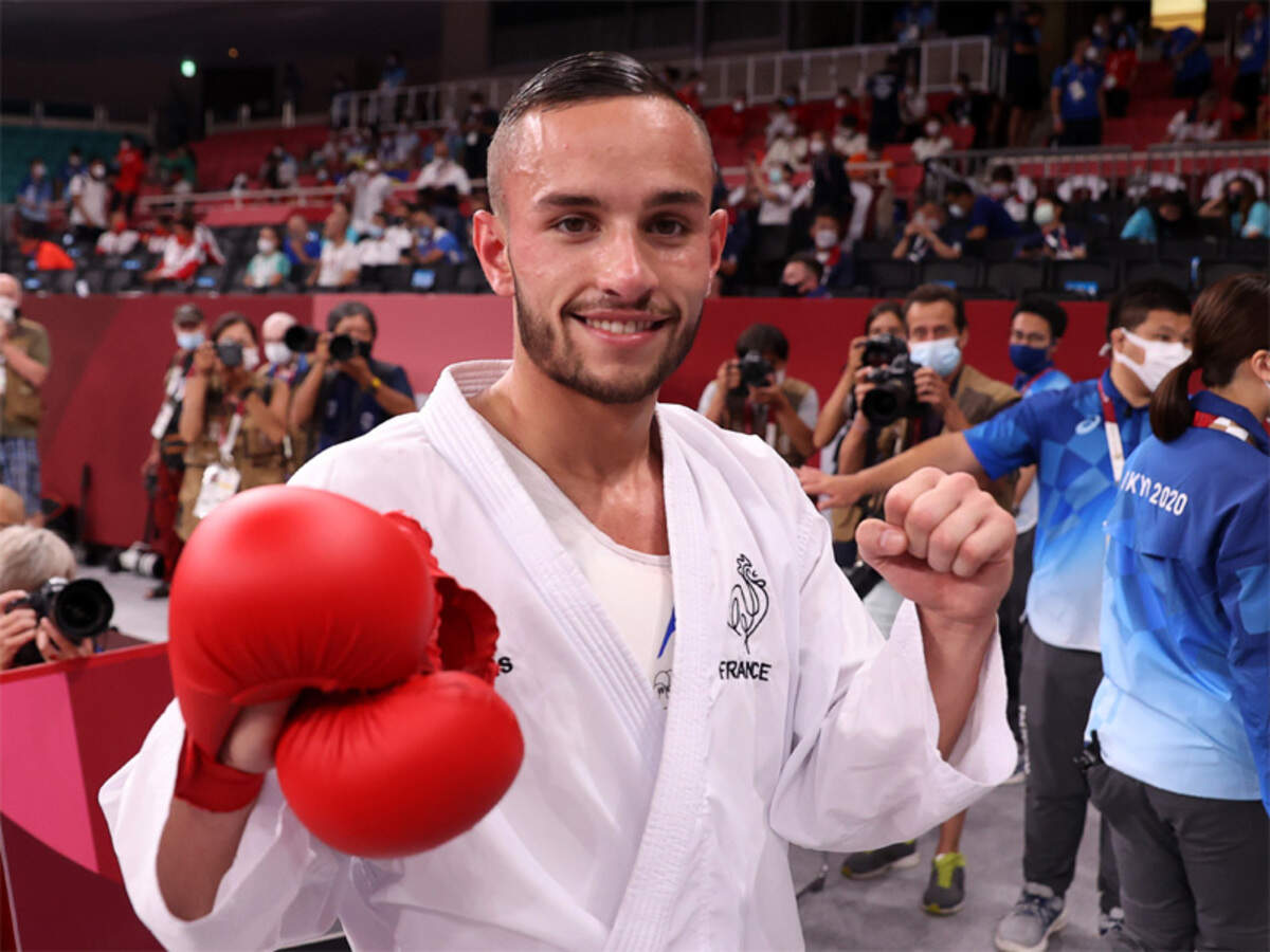 French National Team karate. Steven Da Costa in Olympics. Da Costa world n 1 in his category and already world champion in 2018 beat the Turkish Eray Samdan 5-0 in the final.